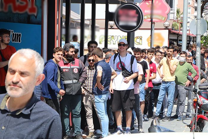 Samsun’da açılışa özel et dönerin fiyatını 1 TL yapan restoranda izdiham oluştu. Vatandaşlar 1 TL’ye döner almak için 300 metrelik kuyruk oluşturdu