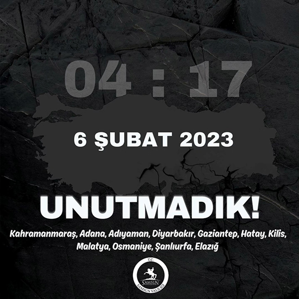 Samsun Valisi Orhan Tavlı, 11 ili etkileyen Kahramanmaraş merkezli 6 Şubat depremlerinin üçüncü yıl dönümü dolayısıyla AFAD İl Müdürlüğünde düzenlenen programa katıldı.
