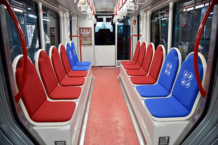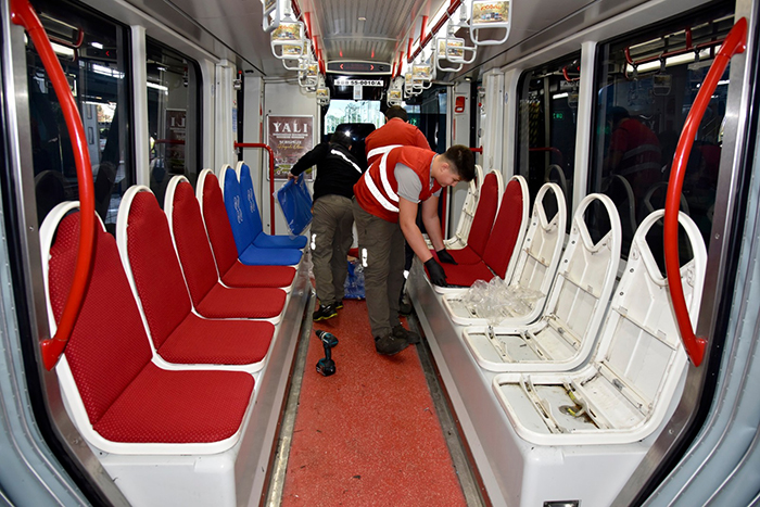 Samsun en çok tercih edilen toplu taşıma aracı olan tramvayların yolcu koltukları yenileniyor