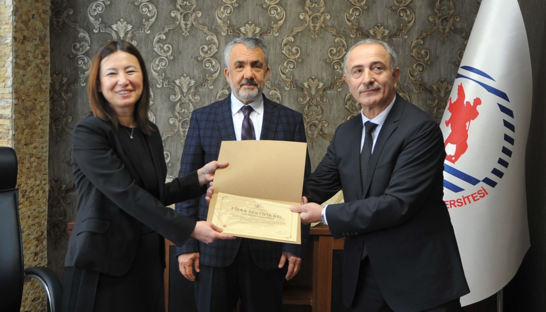 Göreve başlayan Prof. Dr. Ali Uzun tarafından, Prof. Dr. Fatma Aydın’a yaptıkları hizmetlerden dolayı fidan sertifikası verildi. Devir teslim törenine akademik ve idari kadro katıldı.