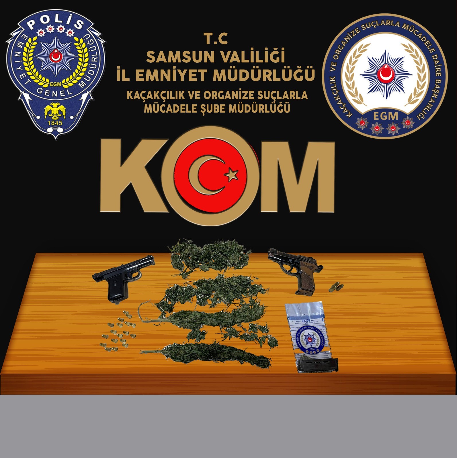 Samsun Emniyet Müdürlüğü Kaçakçılık ve Organize Suçlarla Mücadele (KOM) Şube Müdürlüğü ekipleri Bafra İlçesinde bir ikamete operasyon düzenledi.