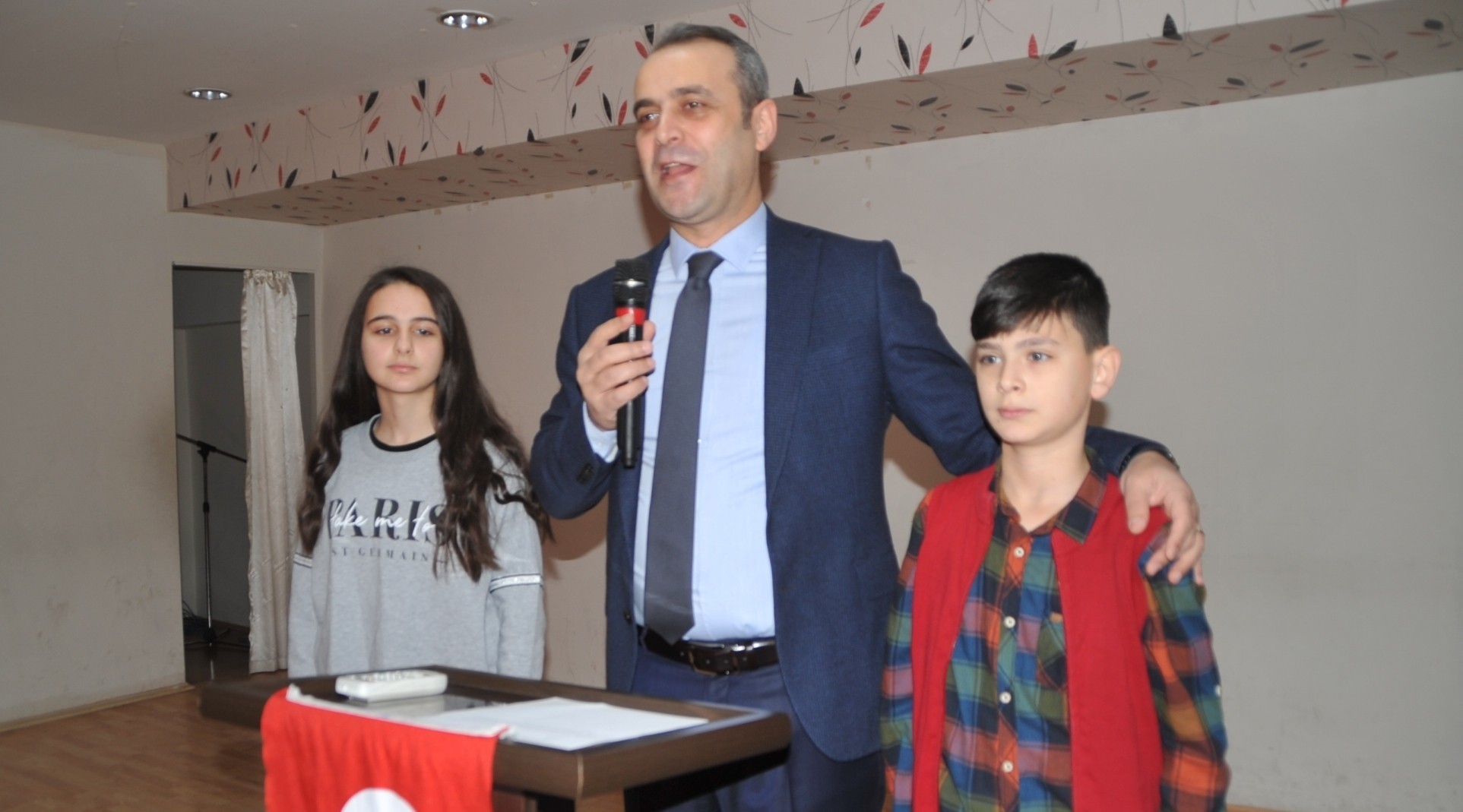 Bafra Kaymakamlığı önderliğinde, İlçe Milli Eğitim Müdürlüğünün desteğinde, İlçe Emniyet Müdürlüğünce hazırlanan “Güvenli Gelecek Çocuklarla Gelecek” isimli projemizin ilk basamağının Fatih Ortaokulu konferans salonunda tanıtımı yapıldı. Tanıtım programında konuşan Kaymakam Ahmet Adanur, “Daha önceden çeşitli vesilelerle gündem olan burada da uygulamasını yaptığımız trafikle ilgili Emniyet Müdürlüğümüz ve Milli Eğitim Müdürlüğümüz ile başlayan projenin başlangıç, açılış, beraber dikkat çekme, özellikle kendi şehrimizde bir farkındalık oluşturma adına değerlendirmiş bulunuyoruz. Trafikte her yıl 6 bin 7 bin ölüm olayları mevcut. Tabi Emniyet Genel Müdürlüğü, Jandarma Genel Komutanlığı İçişleri Bakanlığı koordinasyonunda son iki yıldır trafikte ciddi anlamda kurallara uymayan sürücülere hem eğitim anlamında hem kampanya anlamında bu sayıyı aşağı doğru çekmeye başladı. İki yılı önceye nazaran yüzde 20’ye yakın bir azalma mevcut. Başlangıç noktası daha küçükken ilkokulda iken, ortaokulda iken bu eğitimi çocuklarımıza sağlıklı bir şekilde vermemiz gerektiğine inanıyorum. Tabii ki toplumun her kesiminde farkındalık oluşturmamız gerekir. Ancak buradan başlarsak bir kaç yıl içerisinde çok daha uzun yollar almış oluruz diye düşünüyorum. Okullarda öğretmenlerin, yöneticilerin, rehberlik öğretmenlerinin farkındalık oluşturma adına üzerinde durmaları gerektiğini, bizim de bu tip kampanya projeleri ile farkındalık oluşturarak insanların dikkatini çekmemizi, zaten içişleri bakanlığının yürüttüğü projeler var. Tüm Türkiye’nin dikkatini çekme adına. Bütün bunlar bir kaç yıl içerisinde ölümlerin sıfıra yaklaştığı bir Türkiye hayal ediyoruz. Gelişmişlik sadece maddi yapılarla, yollarla, köprülerle binalarla bir yere kadar. Huzurlu bir yaşam için insanların bir birine olan saygısının gelişmesi, karşılıklı hak ve hukuka saygının gelişmesi, insanların bir birinin haklarını koruması, bir birlerinin haklarına tecavüz etmemesi, komşuluk ilişkilerinin iyi olması ve hepsinin gelişmesiyle daha iyi bir refah düzeyine ulaşmak mümkün. Trafikte refah seviyesini aşağı çeken en önemli etkenlerden bir tanesi. O yüzden bu projenin çok faydalı olacağını düşünüyorum. O yüzden üzerinde duracağımız bir konu olacak” dedi.