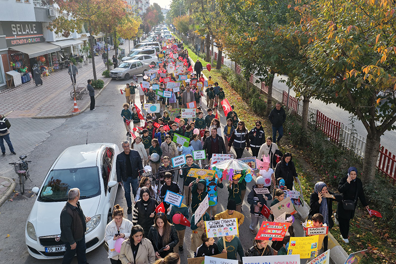 Yürüyüş, Mehmet Akif Ersoy Caddesi’nden başlayarak Atatürk Bulvarı, Cumhuriyet Caddesi ve İsmet Paşa Caddesi güzergahında devam etti. Renkli dövizler taşıyan öğrenciler, “Çocuk Hakları İnsan Haklarıdır”, “Her Çocuk Eşittir” gibi sloganlarla farkındalık oluşturdu. Etkinlik okul bahçesinde son buldu.