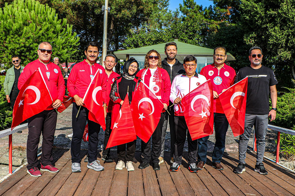 Samsunspor Kulübü Nuri Asan Tesisleri’nden başlayan ve Bandırma Gemi-Müze ve Millî Mücadele Açık Hava Müzesi’nde son bulan 100 Metrelik Bayrak Yürüyüşü, sporcuların yanısıra Samsunluların katılımıyla gerçekleştirildi. Dev bayrak altında yapılan yürüyüşe Samsunlular alkışlarıyla da destek verdi.