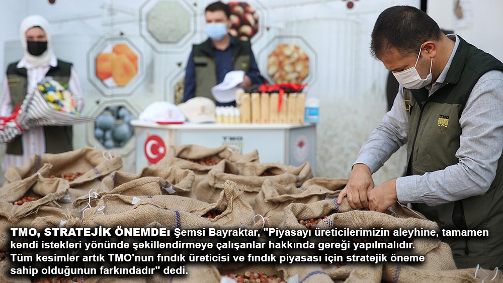 “TMO, açıklamış olduğu alım fiyatlarıyla ve uyguladığı politikalarla piyasada denge sağlamaya çalışıyor. Bir firmanın tekelci uygulamalarına karşı, hem üreticimizi hem de üreticimizden fındık alıp bu firmaya satamayan tüccar ve manavımızı bu baskıdan kurtarmak zorundayız. Bu süreçte bu baskıyı kırmak ve piyasadaki bu bunalımdan kurtulmak için hem üreticimizden, tüccarımızdan, manavımızdan hem de TMO’dan daha kararlı çaba göstermelerini bekliyoruz. TMO daha hızlı ve daha fazla alım yapmalı, alım merkezlerini artırmalı, çiftçimize ödemeleri peşin yapmaya gayret göstermelidir. Diğer taraftan fındığın yüzde 90’ı TMO’nun altındaki bir fiyatla piyasada satılıyor. Buna müsaade edilmemelidir.”