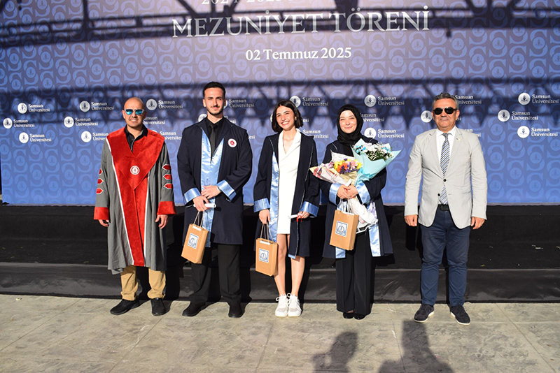 Mezuniyet programında SAMÜ Mühendislik ve Doğa Bilimleri Fakültesi Makina Mühendisliği Bölüm 1’incisi Arif Kağan Keleş, 2’ncisi Muhammet Başka, 3’üncüsü Zeynep Özbayrak, Endüstri Mühendisliği Bölüm 1’incisi Ahmet Can Bozduman, 2’ncisi Elif Tilgel, SAMÜ Özdemir Bayraktar Havacılık ve Uzay Bilimleri Fakültesi Uçak ve Uzay Mühendisliği Bölüm 1’incisi Melih Beşinci, 2’ncisi Ebru Şenel, 3’üncüsü Nagehan Akın hediyelerini MMO Samsun Şube Yönetim Kurulu Başkanı Kadir Gürkan’dan aldı.