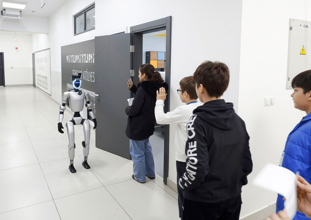 Samsun Canik’te Deneyap Teknoloji Atölyesi Öğrenci Seçme Sınavı’na katılan öğrencileri, robot CANİKMAN karşılıyor