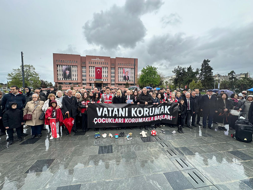 Samsun’da CHP Samsun İl Örgütü, 23 Nisan nedeniyle düzenlediği ‘sessiz’ yürüyüşte silahlı saldırılarda öldürüler çocukları da andı