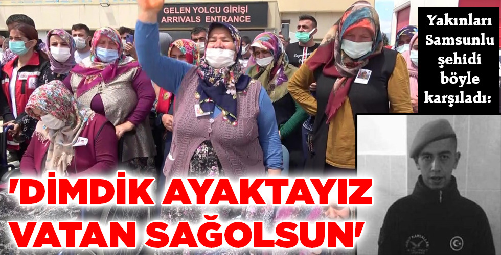 Suriye’de terörist aldırıda şehit olan Samsunlu Sözleşmeli Er Emrah Arslan’ın cenazesi, yakınlarının “Dimdik ayaktayız. Vatan sağolsun” sözleriyle karşılandı