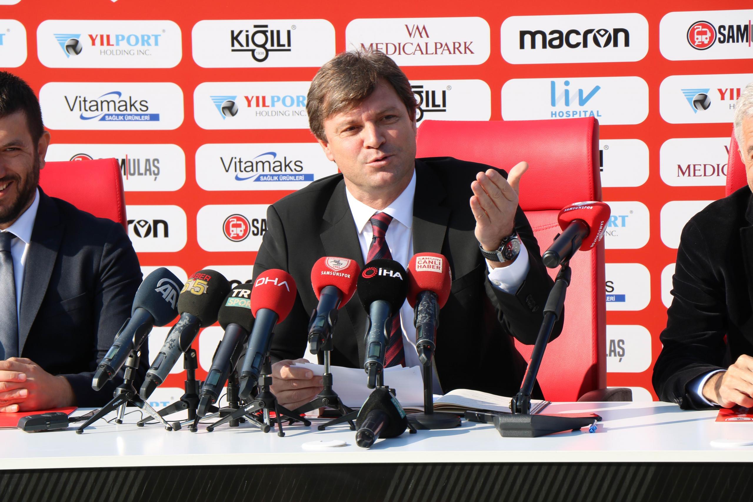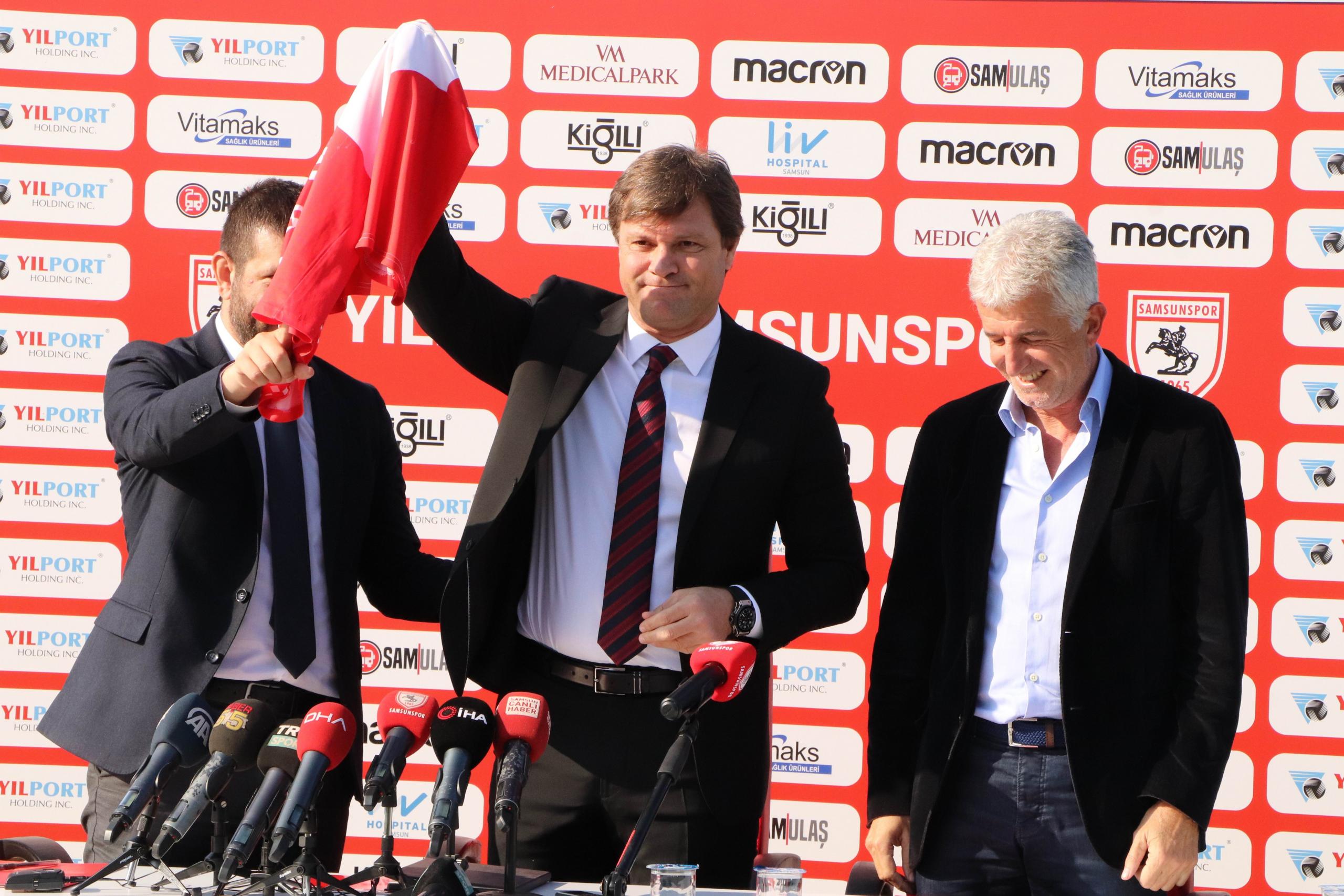 Deneyimli çalıştırıcı, Samsunspor’u Süper Lig’in 6. şampiyonu yapmak için çok çalışacaklarının altını çizerek, “Bugün burada güzel geçecek bir tarihin ilk sayfasını yazıyoruz. Samsunspor’un Süper Lig’in 6. şampiyonu olması hedefi için buradayım. Bu bir meydan okumadır. Büyük Samsunspor’un ve taraftarın desteği ile birbirimize güveneceğiz, sabredeceğiz ve çok çalışıp birlikte başaracağız. Bu imzanın Samsun şehrine ve ülke futboluna hayırlı olmasını diliyorum” açıklamasını yaptı.
