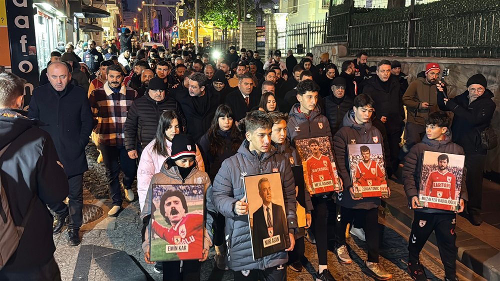 Yürüyüş sırasında, kazada yaşamını yitiren teknik direktör Nuri Asan, futbolcular Muzaffer Badalıoğlu, Zoran Tomiç, Mete Adanır, otobüs şoförü Asım Özkan ile kazadan yıllar sonra hayatını kaybeden takım kaptanı Emin Kar’ın fotoğrafları taşındı. Anma programı kapsamında daha sonra Büyük Camii’de futbol şehitleri için mevlit okutuldu.