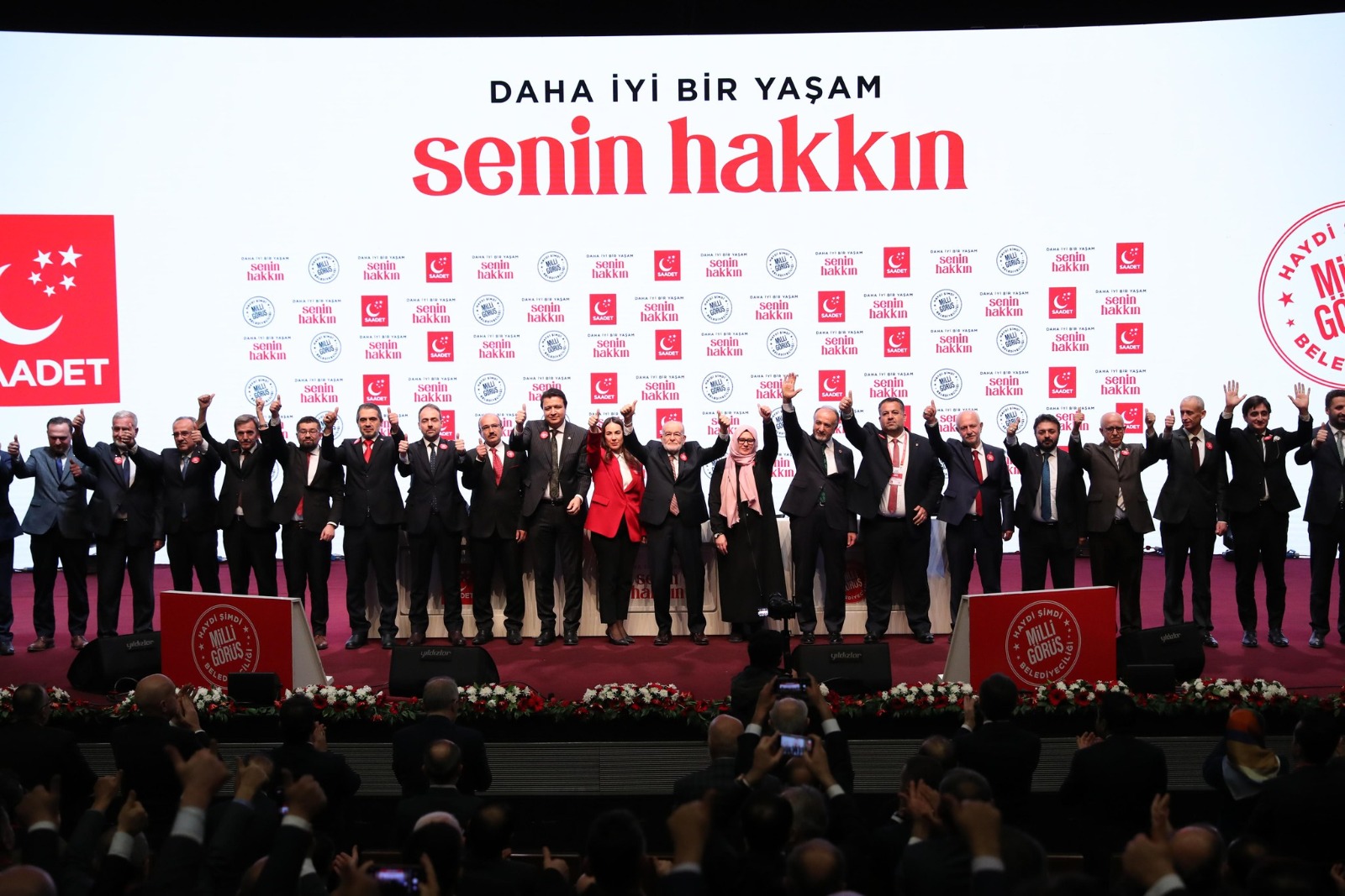 Saadet Partisi’nin Aday Tanıtım Toplantısı’nda öne çıkan başlıklar arasında Millî Görüş Belediyeciliği vurgusu yer aldı. ‘Saadet İş Başında, Haydi Bismillah!’ ana sloganıyla düzenlenen törende önemli isimlerin yanı sıra partinin il başkanları, il yönetim kurulu üyeleri, kadın ve gençlik kolları başkanları ile binlerce partili iştirak etti.