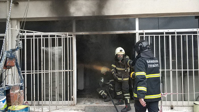 Samsun’da bir beyaz eşya tamir servisinde çıkan yangın itfaiye ekiplerince söndürüldü