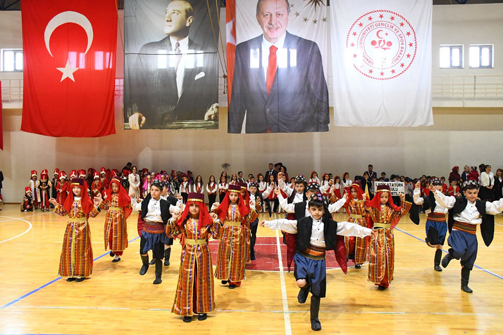 İlçede etkinlikler İlçe Milli Eğitim Müdürü Erdal Aksoy tarafından Atatürk anıtına çelenk sunumu ve istiklal marşı okunması ile başladı. Sabah saatlerinde başlayan kar yağışı dolayısıyla spor salonunda devam eden kutlamalarda Atatürk İlkokulu tarafından hazırlanan gösteriler, salonu dolduran ilçe halkı ve protokol üyeleri tarafından büyük beğeni ile izlendi.