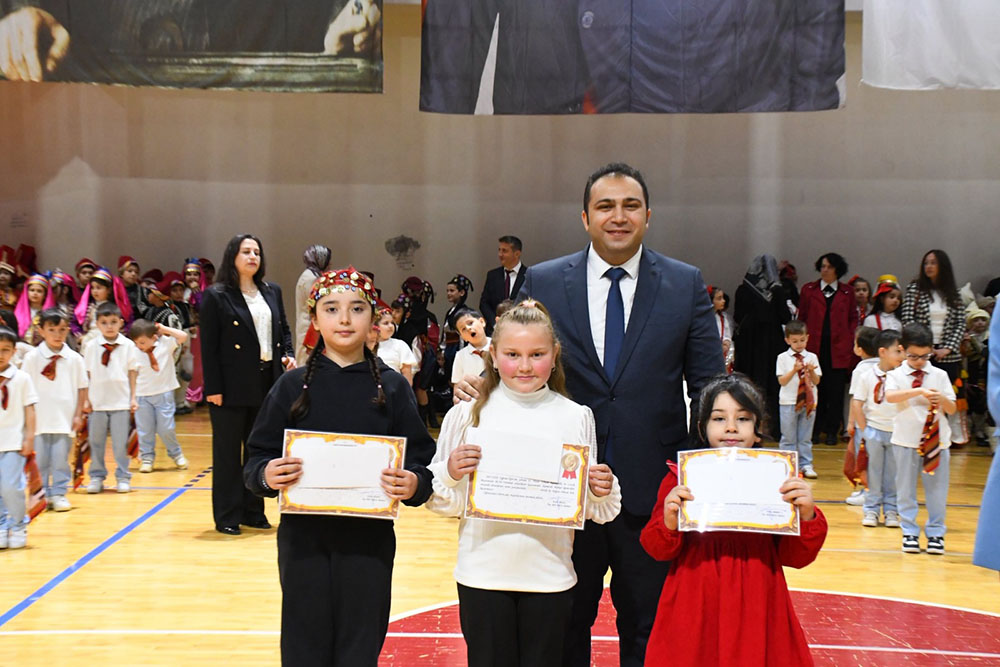 Kaymakam Tuğçe Orhan, öğrencilerden tarafından kendisine sunulan bayrağı öperek teslim alırken etkinlikler, hafta boyunca gerçekleştirilen yarışma ve müsabakalarda dereceye giren öğrencilere ödüllerinin verilmesinin ardından sona erdi.