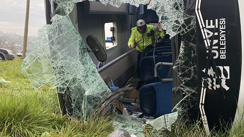 İlkadım ilçesi Kıran Mahallesi Ankara yolunda meydana gelen kazada, İstanbul’dan Ordu’ya giden Ünye Belediyesi’ne ait 52 AEE 917 plakalı otobüs, sürücünün direksiyon kontrolünü yitirmesi sonucu yol kenarına devrildi.