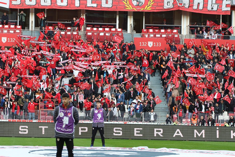 Maç öncesinde TSYD Samsun Şubesi tarafından basın mensuplarına dağıtılan Türk Bayrakları, İstiklal Marşı okunurken hep birlikte açıldı. O anlarda basın tribünü yalnızca bir çalışma alanı değil milletin ortak vicdanının, hafızasının ve kararlılığının sesi oldu. Sessiz ama son derece etkili bu duruş, tribünlerden sahaya yayılan bir milli bilinç tablosu oluşturdu.