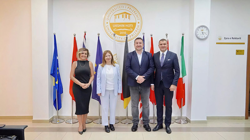 OMÜ Rektörü Prof. Dr. Fatma Aydın başkanlığındaki üniversite heyeti, Kosova’nın Prizren kentinde bulunan Ukshin Hoti Üniversitesi’ni (UPZ) ziyaret etti. Heyet, UPZ Rektörü Prof. Dr. Mentor Alişani ve üniversite yönetimi tarafından karşılandı. Gerçekleştirilen görüşmelerde, iki üniversite arasında akademik ve bilimsel iş birliğinin güçlendirilmesi hedefi doğrultusunda, akademik personel değişimi, öğrenci hareketliliği, ortak araştırma projeleri geliştirilmesi ve uluslararası faaliyetlerin düzenlenmesi gibi konular ele alındı. Ziyaretten duyduğu memnuniyeti dile getiren UPZ Rektörü Prof. Dr. Mentor Alişani, Prizren Üniversitesi’nin Türk üniversiteleriyle yıllar içinde kurduğu güçlü ilişkilerin daha da geliştirilmesinden memnuniyet duyduğunu ifade etti.
