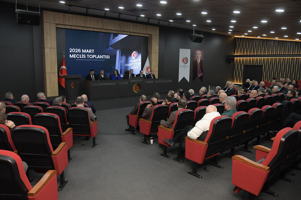 Samsun TSO Mart Ayı Olağan Meclis Toplantısı, Meclis Başkanı Haluk Akyüz yönetiminde gerçekleştirildi. Toplantıda söz alan Samsun TSO Yönetim Kurulu Başkanı Salih Zeki Murzioğlu, iki toplantı arasında yürütülen faaliyetler hakkında meclis üyelerine bilgi verdi. Murzioğlu, konuşmasında bölgede yaşanan savaş ve siyasi çekişmelerin ekonomiye etkilerine ilişkin değerlendirmelerde de bulundu.