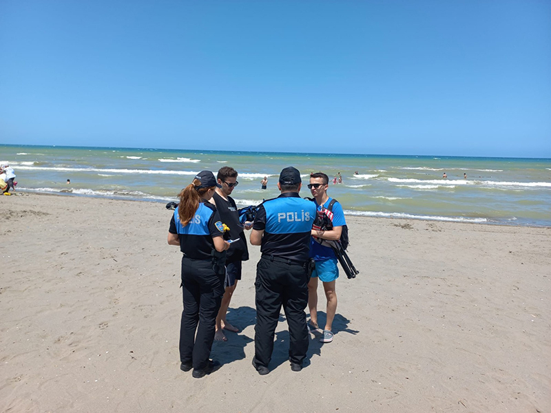 Samsun Emniyet Müdürlüğü Toplum Destekli Polislik Şube Müdürlüğü ekipleri, yaz mevsimi boyunca özellikle yoğun kullanılan sahil alanlarında görev alarak vatandaşlarla birebir iletişim kuruyor. Ekipler, boğulma olaylarının önüne geçmek amacıyla çocuklardan yaşlılara kadar farklı yaş gruplarına güvenli yüzme alanları, can yeleği kullanımı, deniz şartlarının takibi gibi konularda bilgi veriyor.