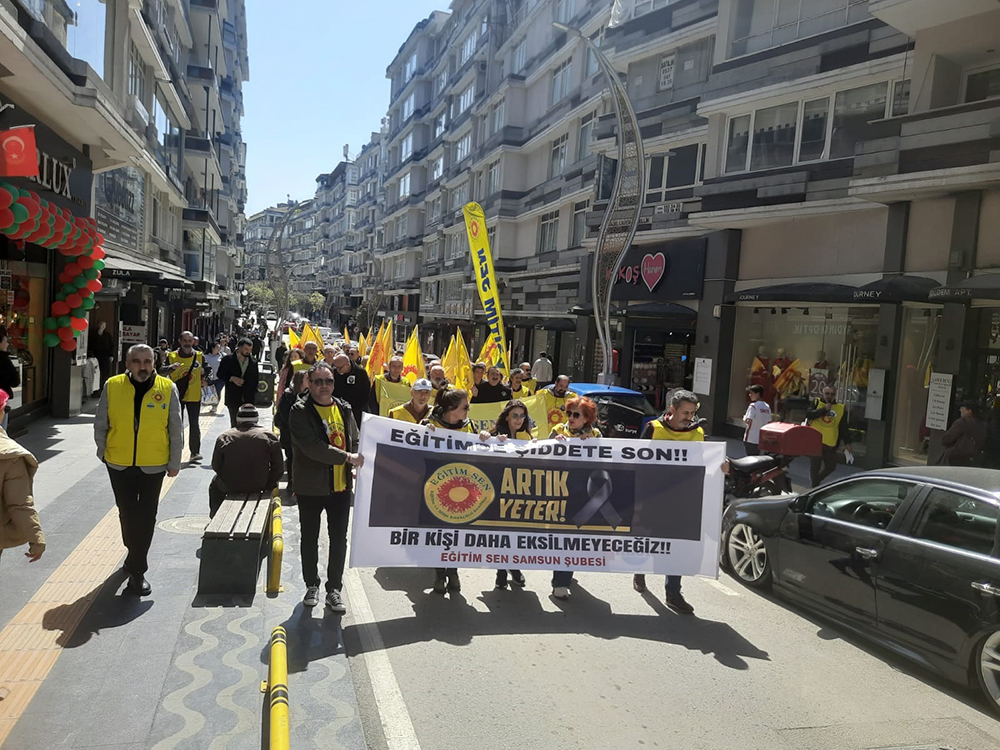 Samsun’da eğitim sendikaları temsilcileri ve üyeleri, Şanlıurfa’nın Siverek ilçesinde yaşanan 16 eğitimci ve öğrencinin yaralandığı silahlı okul saldırısının ardından iş bırakma eyleminde bulundu. Eğitimciler ayrıca kent merkezinde yürüyüş düzenleyerek yaşanan saldırı protesto etti.