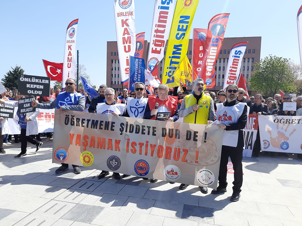 “Okulları şiddet ortamına çeviren bu saldırıların nedeni, AKP iktidarı boyunca MEB’in başına geçirilen her bakanın öğretmenleri, laik bilimsel kamusal eğitimi hedef gösteren söylem ve politikalara imza atmasıdır. Önce 5 yıl müsteşarlığa atanan, sonrasında kararname ile bir gecede rektör, devamında bakan yapılan Yusuf Tekin’in kurduğu dildir, imza attığı politikalardır.