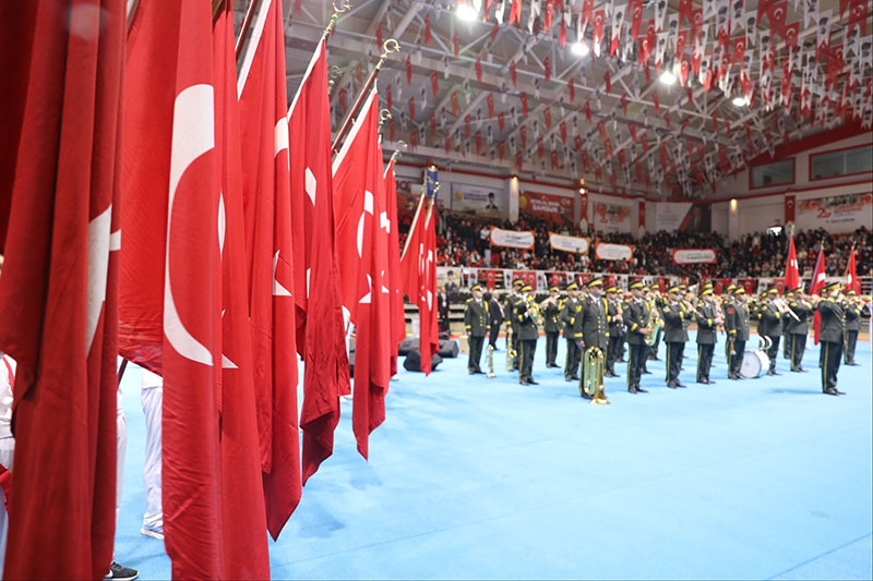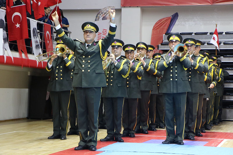 Konuşmaların ardından sahneye çıkan öğrenciler şiirler okurken, Samsun Büyükşehir Belediyesi Konservatuvarı ekipleri müzik performanslarıyla salona coşku kattı. Sahra Sıhhiye Okulu ve Eğitim Merkezi Komutanlığı Bölge Bandosu’nun marşları eşliğinde yapılan bayrak yürüyüşü, törene damgasını vurdu.