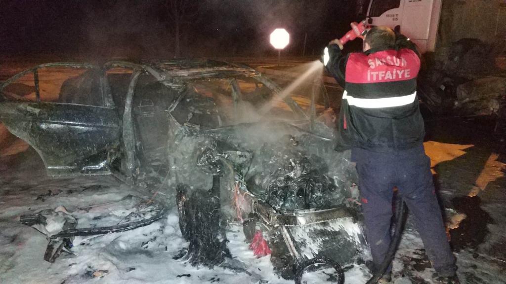 Çarpmanın etkisiyle otomobil alev aldı. Kazada yaralanan otomobil sürücüsü Uğur G. kendisi son anda araçtan dışarı atıp ölümden kurtuldu. Yaralı sürücü 112 Acil Servis ekipleri tarafından ambulansla özel bir hastaneye kaldırılıp tedavi altına alınırken, otomobil ise alev alev yandı. Samsun Büyükşehir Belediyesi İtfaiye Daire Başkanlığı ekipleri yangına müdahale ederek söndürdü. Otomobilden geriye demir yığını kaldı. Kazayla ilgili soruşturma devam ediyor.