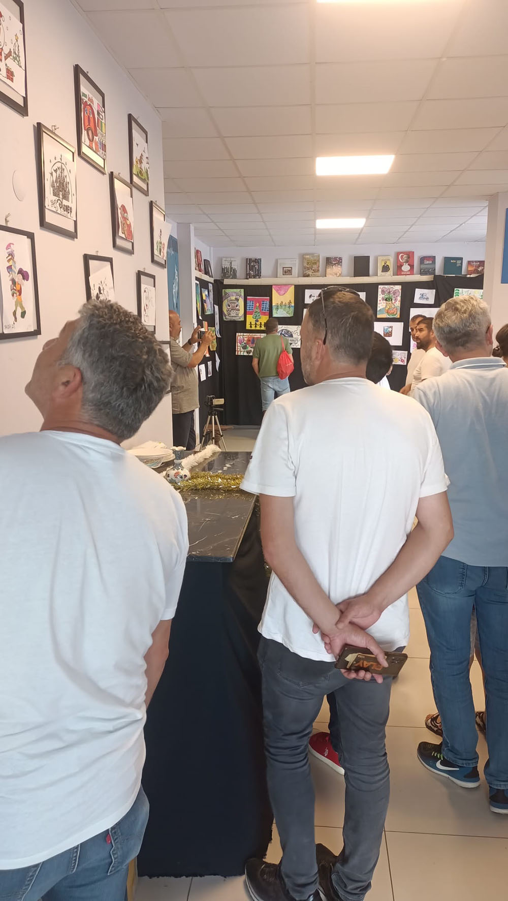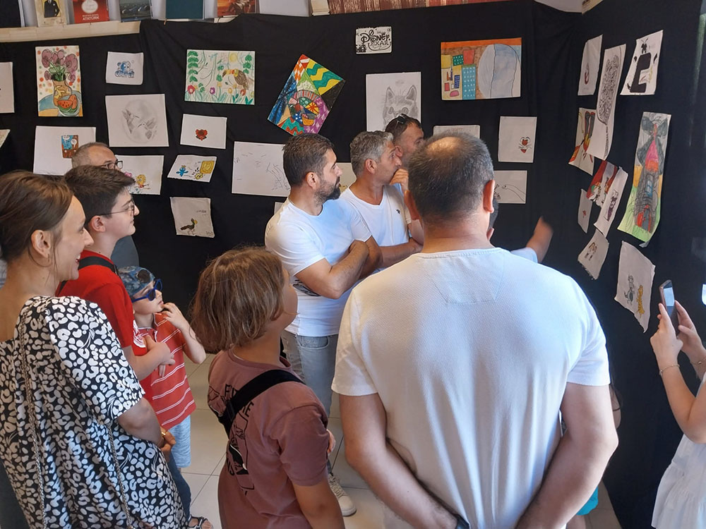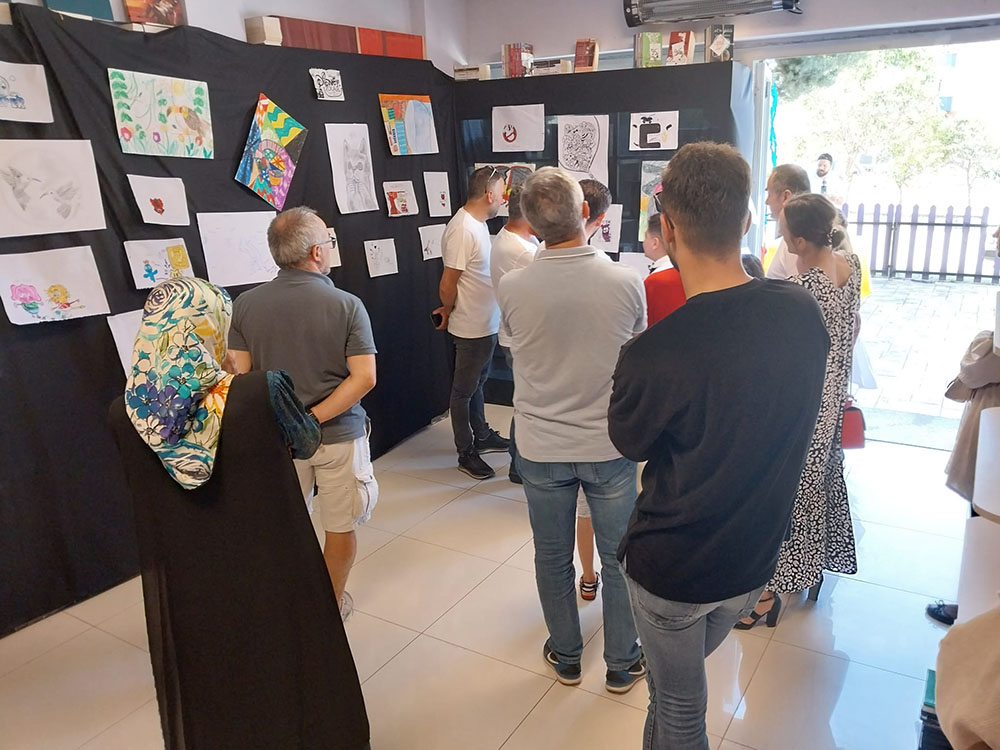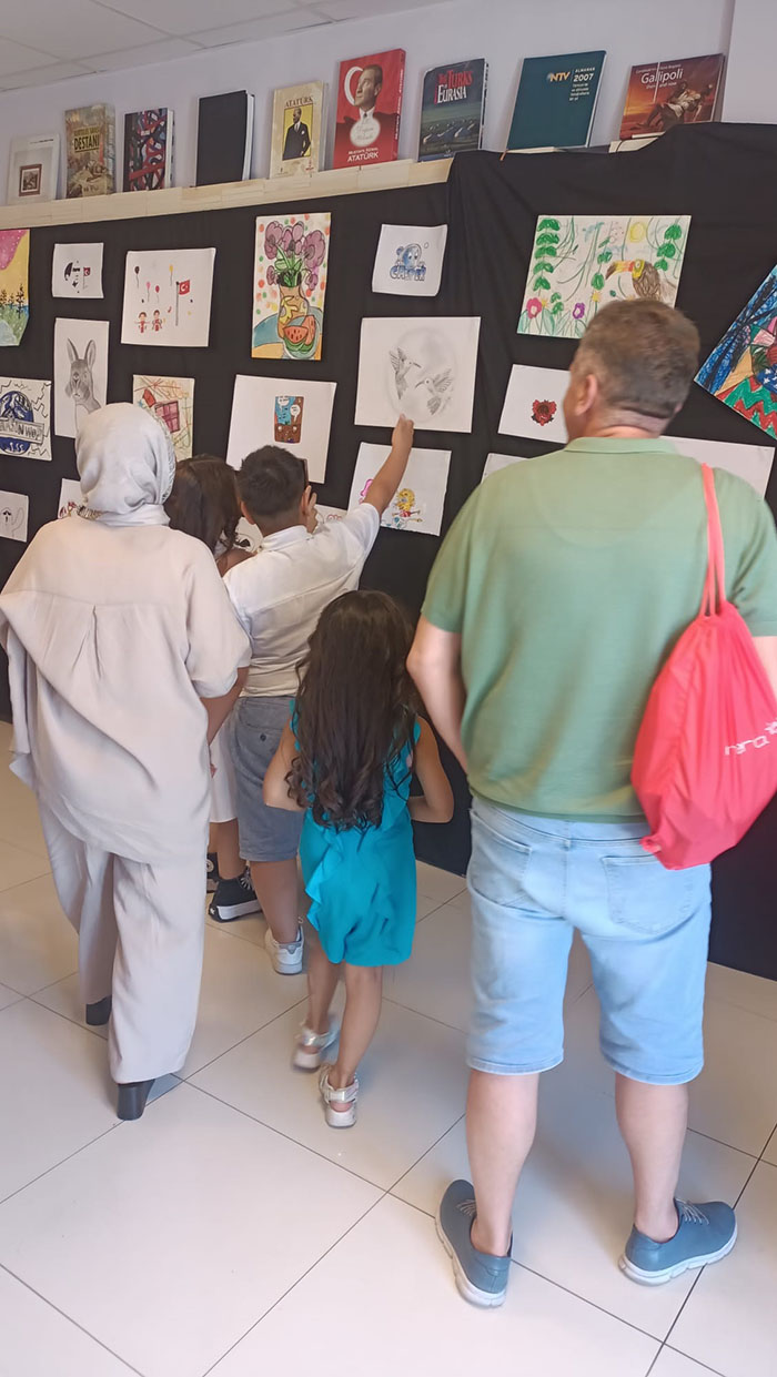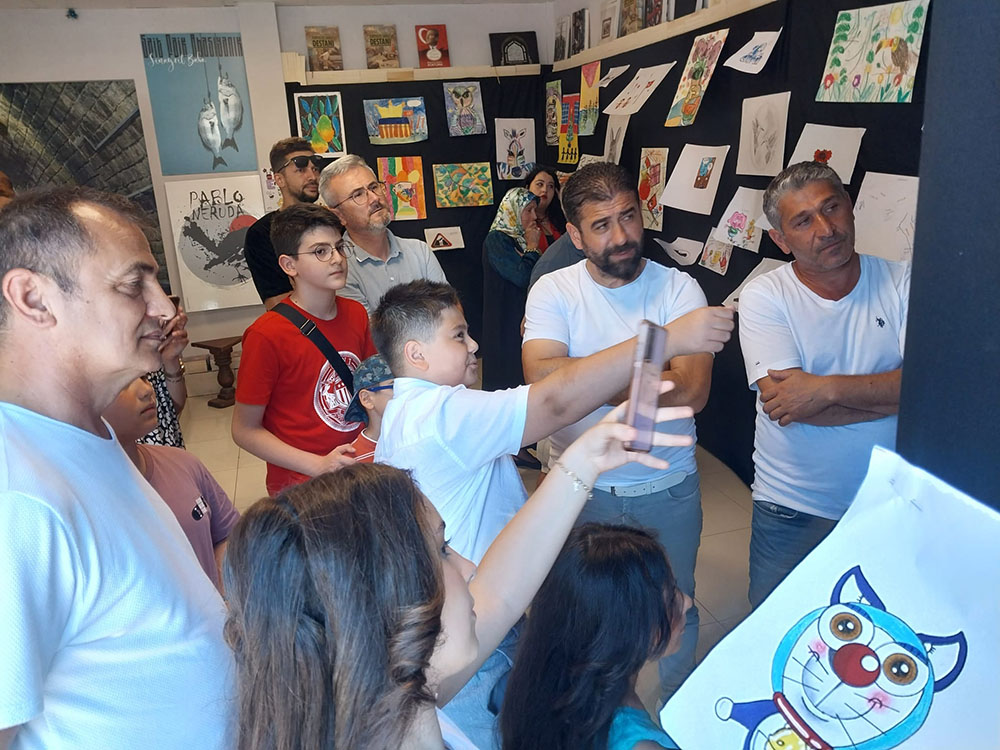 -5’inci sınıf öğrençisi Ahmet Bilge Demircan, annesi Pınar, babası Murat Demircan ve öğretmeni ile birlikte Gülçin Çiçel ile ilk sergisinin mutluluğunu yaşadı.