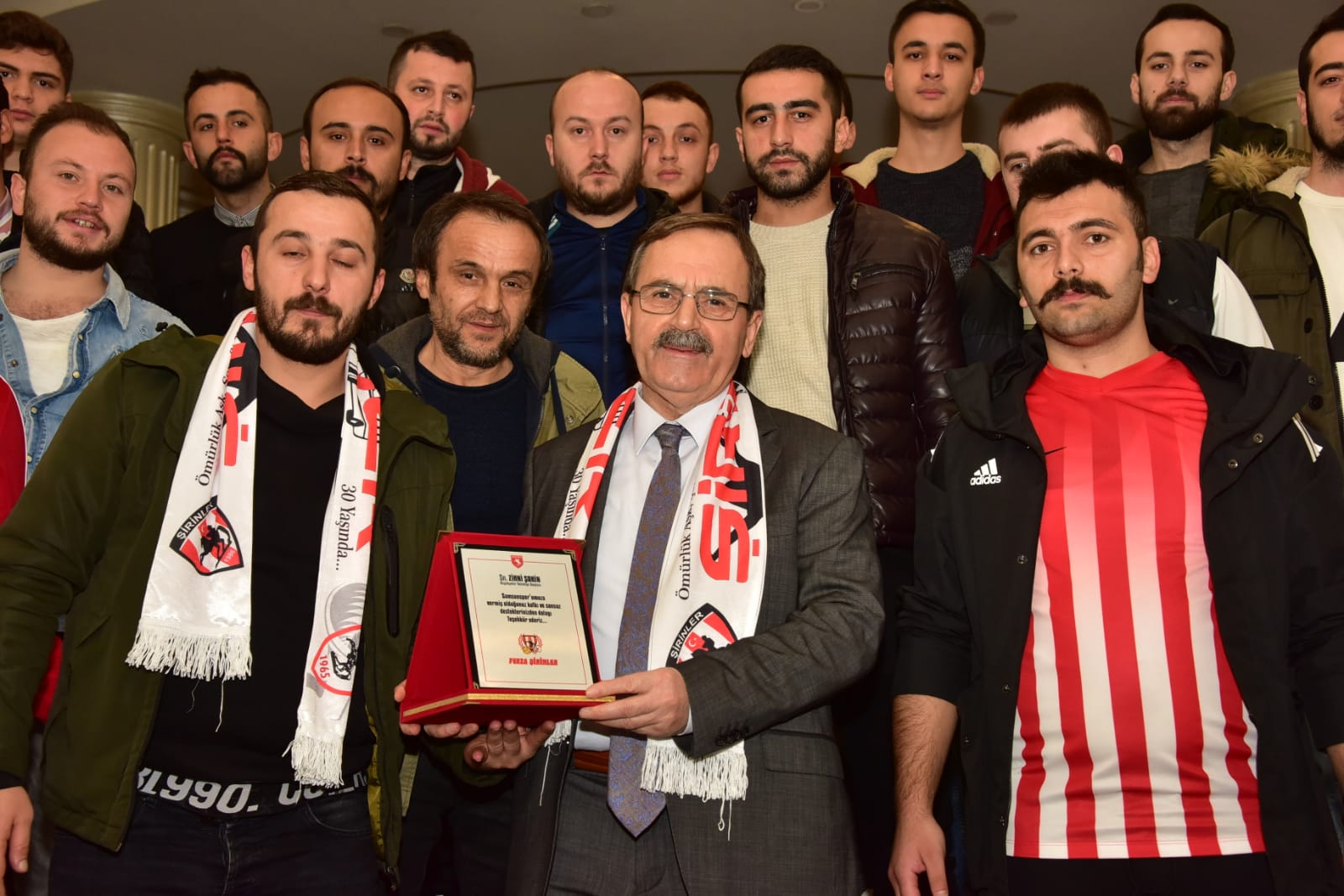 Başkan Şahin’e atkı sunan ve toplu fotoğraf çektiren taraftarlar, “Zihni başkan gönlümüzde taht kurdu. En büyük manevi desteği bizlere o verdi. Bizden bundan böyle başkanımızın yanında olacağımızı tüm kamuoyuna bildiriyoruz. Kendisine ne kadar teşekkür etsek azdır” açıklamasında bulundu.