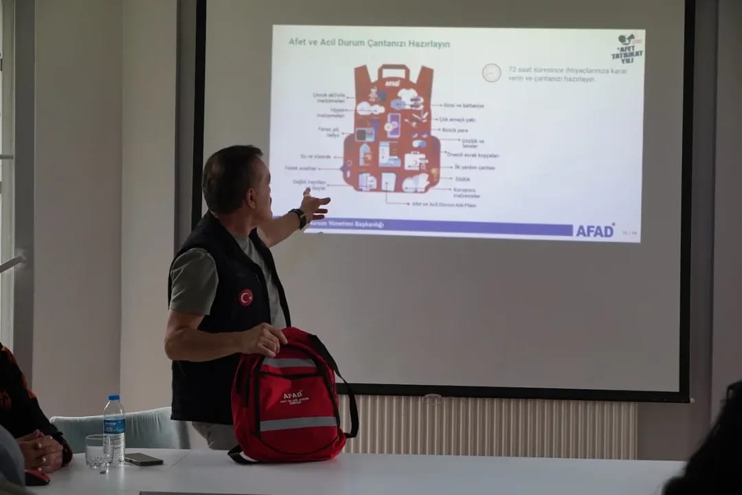 Eğitim programıyla ilgili yapılan açıklamada, “Afet farkındalığı çalışmalarımızda her bireyin afet öncesi, sırası ve sonrasında neler yapabileceğini öğrenmesi, kendini ve sevdiklerini güvene alması amaçlanmaktadır” denildi.