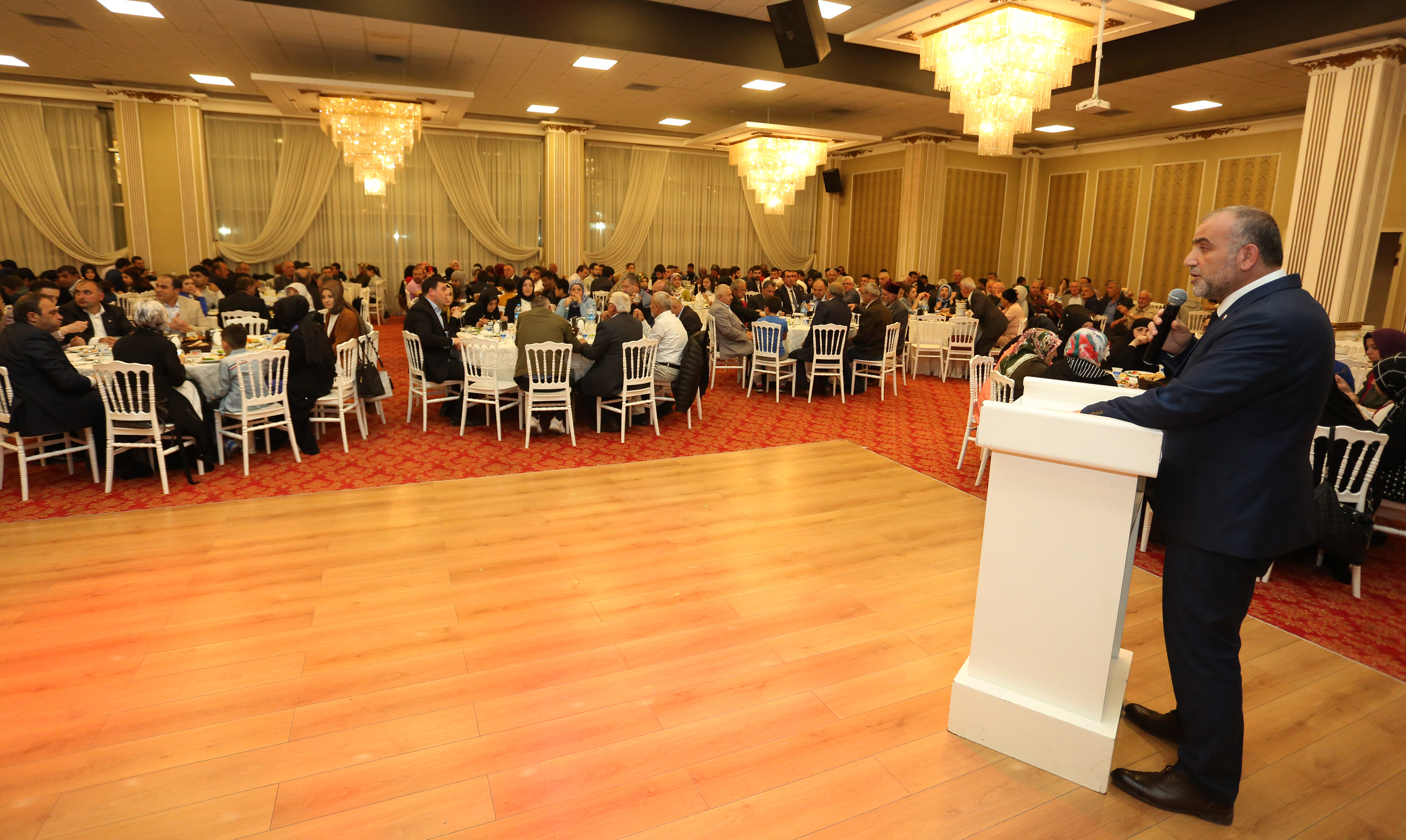 Konuşmasına Peygamber Efendimizin bir Hadisi Şerif’iyle devam eden Başkan İbrahim Sandıkçı; “Allah’ın en sevdiği ev içinde ikram gören bir yetimin bulunduğu evdir.” Dünya da bizim evimizdir. Öyleyse bizler sorumluluk makamında olan insanlar olarak bu hususlarda en fazla hassasiyete hayatımızın her anında sahip olmak zorunda olduğumuzu bilmeliyiz. Bu manada bu yıl ramazan programlarımızı bu ayın maneviyatına uygun programlarla icra ediyoruz. Canik belediyesi olarak en büyük gayemiz ilçemizde başı okşanmamış gönlüne dokunulmamış tek bir yetimimizin kalmamasıdır. Bizim için hizmetlerin en hayırlı olanı da budur. İlçemizin her sorunu üzerine önem ve öncelik sırasına göre eğilerek gereğini yapma noktasında çalışmalarımız belirli bir plan program dahilinde devam ediyor. Önceliğimiz ilçemizde aç yatan açıkta kalan yoksul yetim öksüz olup ta kendisine uzanan bir el olmamış tek bir kardeşimizin kalmamasıdır. Buradan tüm muhtarlarımıza meclis üyelerimize sivil toplum kuruluşlarımıza sesleniyorum; “Gönül kapımız da, belediyemizin kapıları da, belediyemizin var olan tüm imkânları da az evvel bahsettiğim kardeşlerimiz için sonuna kadar açık olacaktır. Sizler de sorumluluk alarak bizlerle koordinasyon halinde tespit ve infak çalışmamız içerisinde yer alabilirsiniz. Adalet ve hakkaniyet ölçüsünde vatandaşımızın hayrına olan tüm işlerin öncüsü ve takipçisi olacağız.”