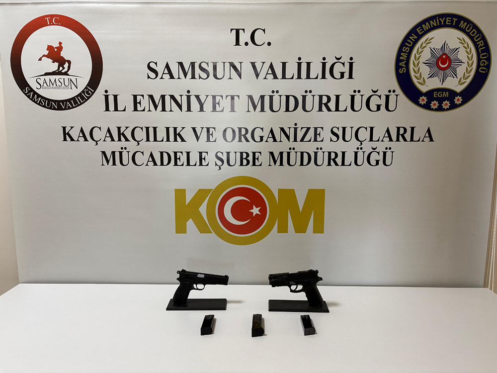 Samsun’un Canik ilçesinde polis ekiplerince şüphe üzerine durdurulan araçta, ev eşyaları arasına gizlenmiş ruhsatsız silahlar ele geçirildi