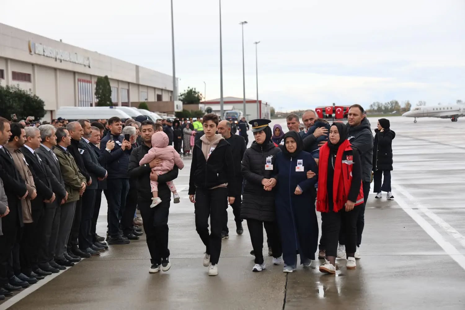 Şehidin 8 gün sonra doğum yapacak olan eşi Seda Altınok ambulans uçakla Samsun’a getirilirken, 2 yaşındaki oğlu ise babasıyla aynı askeri uçakla Samsun’a geldi.