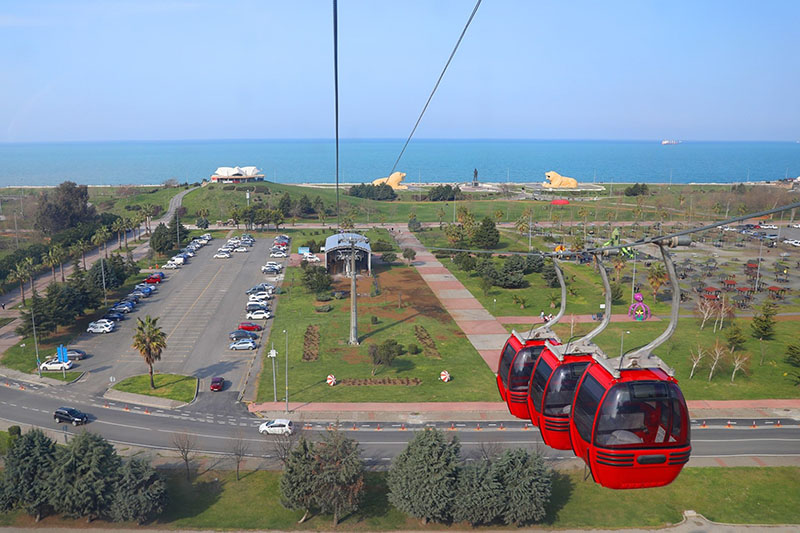 6’şar kişilik 6 kabin bulunan, 320 metre hat uzunluğu ve 62 metre yüksekliğe sahip olan teleferik hattı 2006 yılından bu yana Batıpark ile Amisos Tepesi arasında hizmet veriyor.