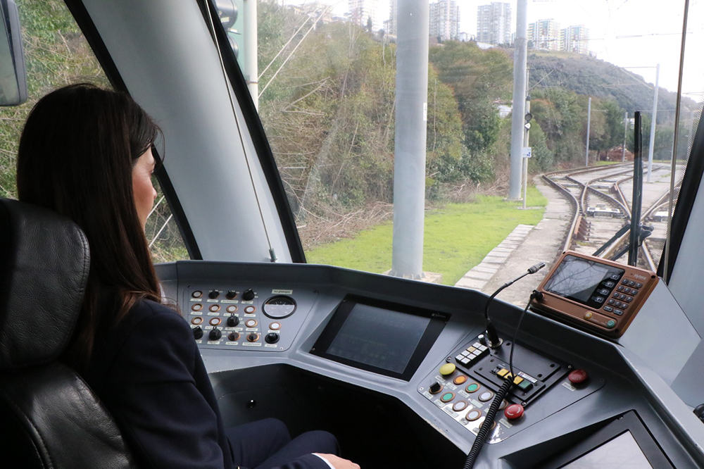 Hande Yenici, “Hafif raylı sistem hattımız; 34 kilometre uzunluğunda, 43 istasyondan oluşmaktadır. 28 tane aktif aracımız var ve günlük 28 araçla hizmet veriyoruz. Hafif raylı sistem işletmeciliğinde toplamda 101 vatmanımız bulunuyor. Bunların 30 tanesi kadın. Birimimizin üçte birini kadınlar oluşturuyor aslında. En son istihdam ettiğimiz 3 vatmanımız ile kadın ve istihdam önceliği de aslında sağlıyor muyuz? Genelde bir pozitif ayrımcılık da oluyor olabilir” dedi.