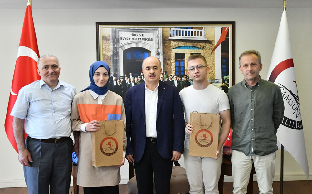 Vali Zülkif Dağlı, Yükseköğretim Kurumları Sınavı’nda (YKS) Türkiye genelinde ilk 100’e giren Samsunlu dört öğrenciden Atakum Proje Anadolu İmam Hatip Lisesi öğrencisi Berranur Albayrak ve Garip Zeycan Yıldırım Fen Lisesi öğrencisi Arda Cengiz ile ailelerini makamında ağırladı.